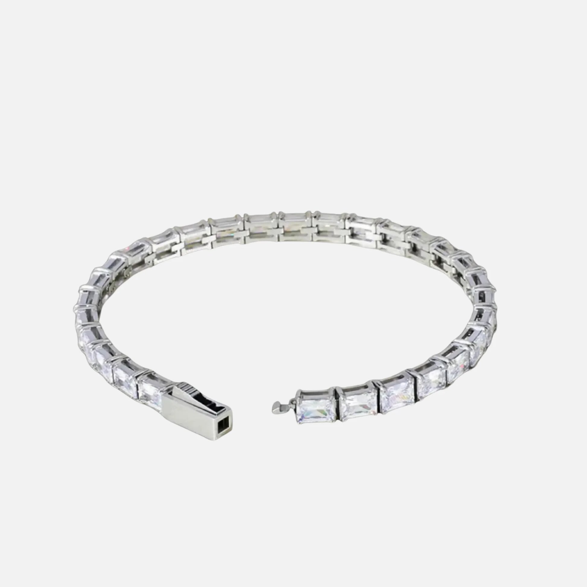 The Square Cut Bracelet features a bold row of precision-set square stones, giving the piece a sharp, modern brilliance. Its clean geometry and uninterrupted shine make it a standout essential that elevates any look with effortless sophistication.